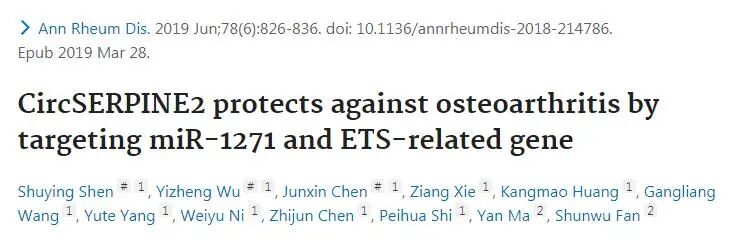 『CircRNA领域新发现』浙江大学范顺武教授课题组发现CircRNA :CircSERPINE2,为骨关节炎治疗提供有效策略