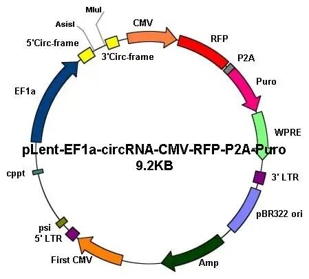 维真科研团队已成功构建了大量circRNA表达载体,并建立了腺病毒、慢病毒和AAV全套circRNA过表达和干扰载体的系统。